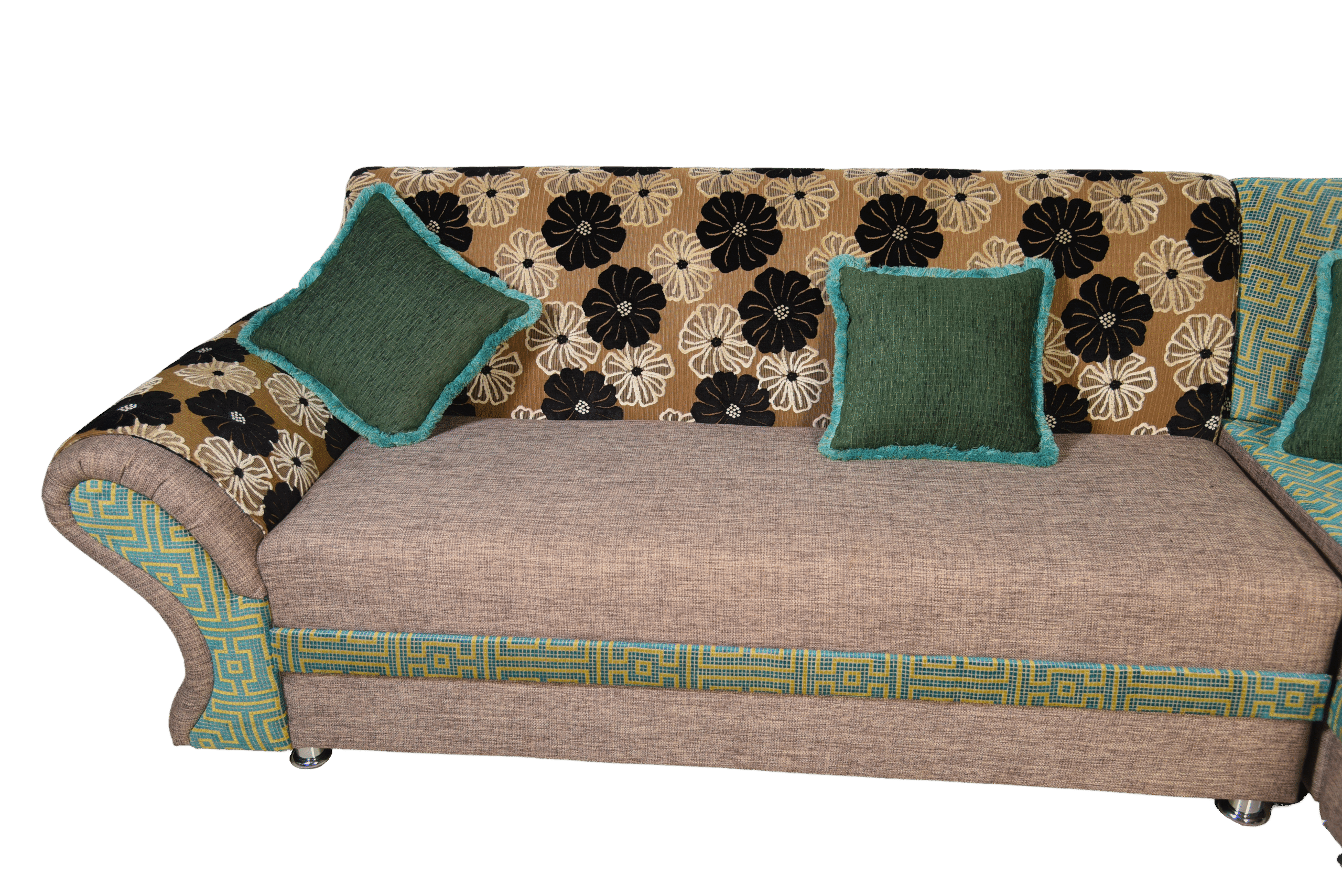 Enhance your living room with this Floral Finish Fabric Corner Sofa, designed with charming patterns and cozy cushioning that bring both comfort and visual appeal to your space. Perfect for homes that love decorative and timeless décor.