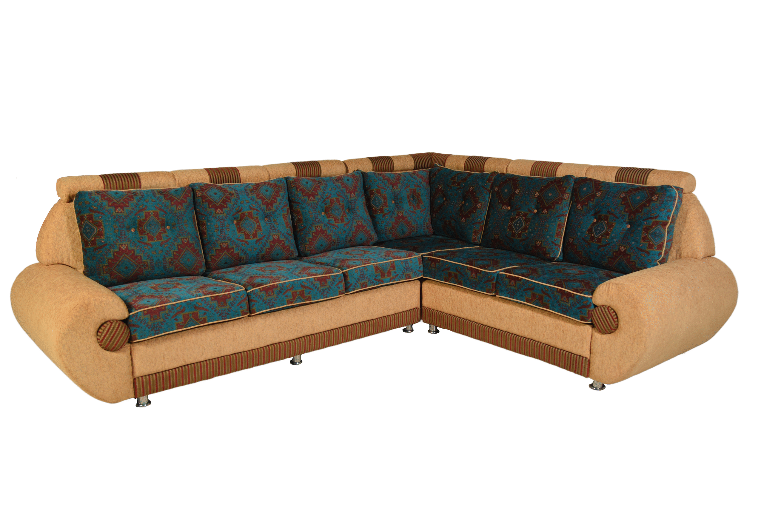 Corner Sofa- Green & Yellow Fabric