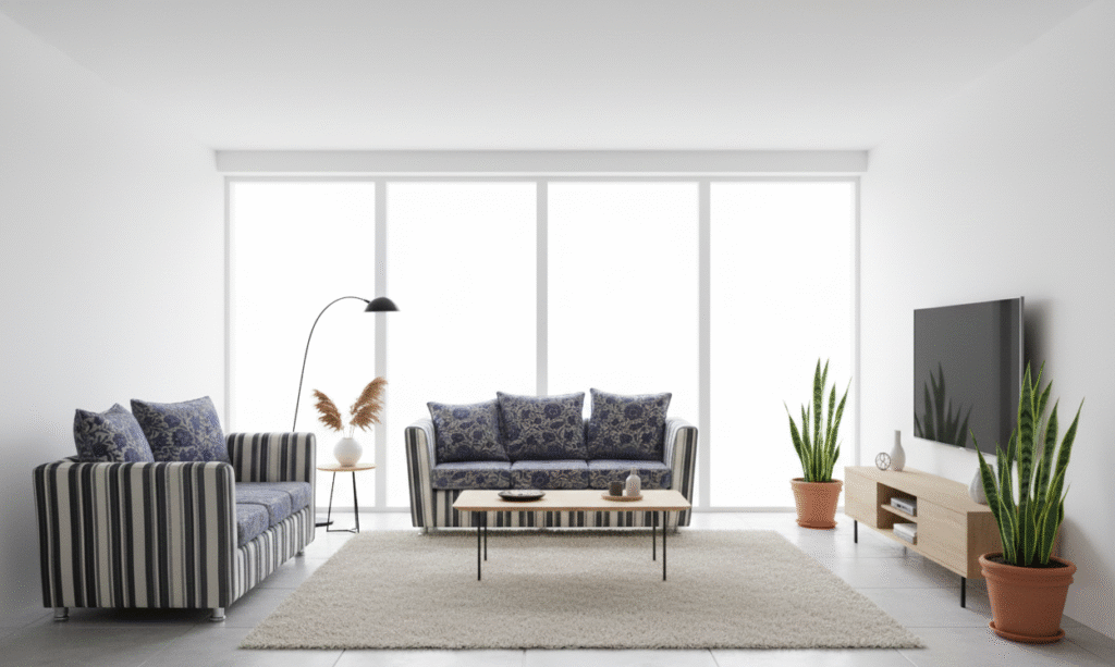 Enhance your living room with the 5-Seater Sofa Set, crafted from premium fabric that offers comfort, durability, and a stylish striped design. Its warm brown tones and modern profile make it a perfect fit for contemporary as well as classic interiors.